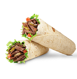 Özenle marine edilmiş ve yavaşça pişirilmiş, ince dilimlenmiş et dönerimiz, dürüm arasında, domates, soğan, marul , biber ve isteğe bağlı olarak soslarla birlikte servis edilir