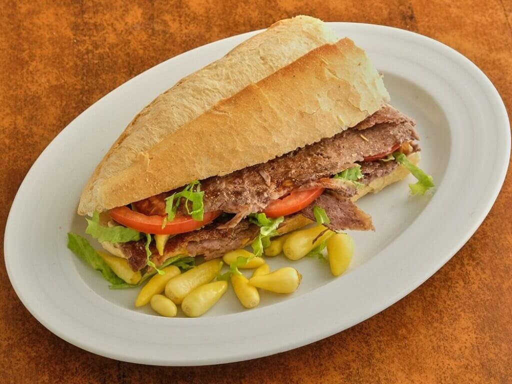 Özenle marine edilmiş ve yavaşça pişirilmiş, ince dilimlenmiş et dönerimiz, taze ve çıtır ekmek arasında, domates, soğan, marul , biber ve isteğe bağlı olarak soslarla birlikte servis edilir.